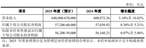 首发招股书中还提到,南网数字预计2025年营业收入为640,000万元至670,000万元,同比增长5.10% 至10.02%;归属于母公司股东净利润为57,200万元至60,000万元,同比增长0.30%至5.21%;扣除非经常性损益后归属于母公司股东的净利润为56,200万元至59,000万元,同比增长0.07%至5.06%。